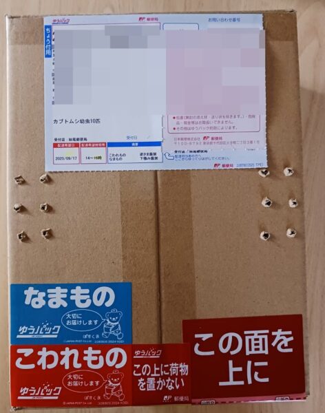 2025年9月17日、岡山から幼虫11匹が届きました。